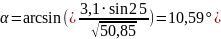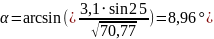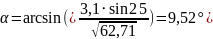 Угол α между результирующим вектором относительной скорости и направлением движения отцепа, град. |