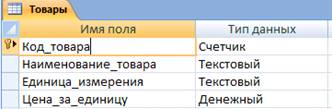 Рисунок 3 -Таблица «Товары»