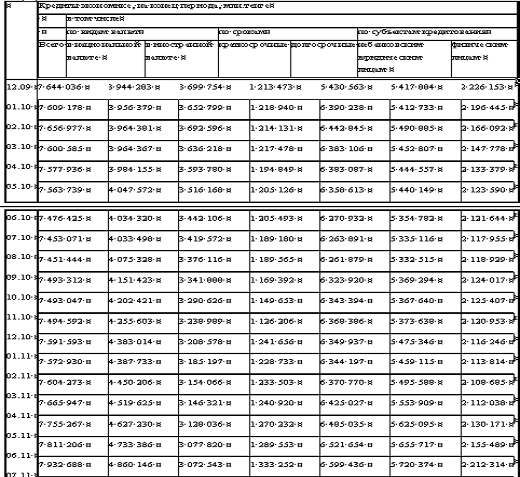 Таблица 1. Кредиты экономике 2009-2011 года.
