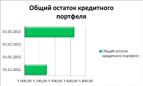 Общий кредитный портфель (нетто) кредитных организаций по состоянию на 31 марта 2013 года составил 4 262,1 млн. сомони, и по сравнению с концом прошлого года увеличились в размере 250,6 млн. сомони или на 6,2%. Вместе с тем, следует отметить, что по предоставленным данным качество кредитов коммерческого сектора ухудшились.