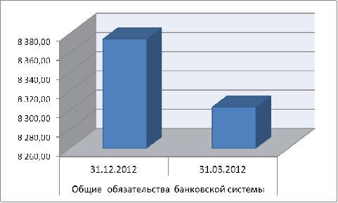 По состоянию на 31 марта 2013 года обязательства банков составили 7 338,1