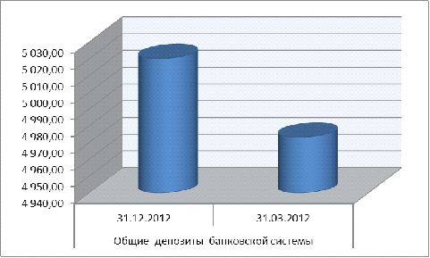 По состоянию на 31 марта 2013 года депозиты составили 4 838,3 млн. сомони