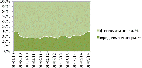 относительную стабильность. Задолженность по кредитам физических и юридических