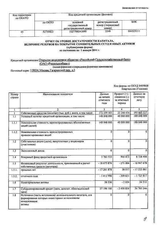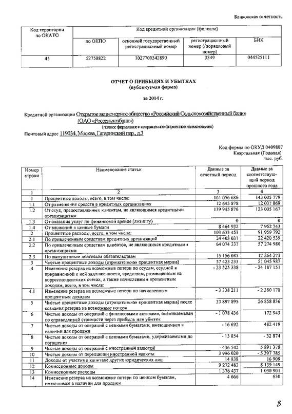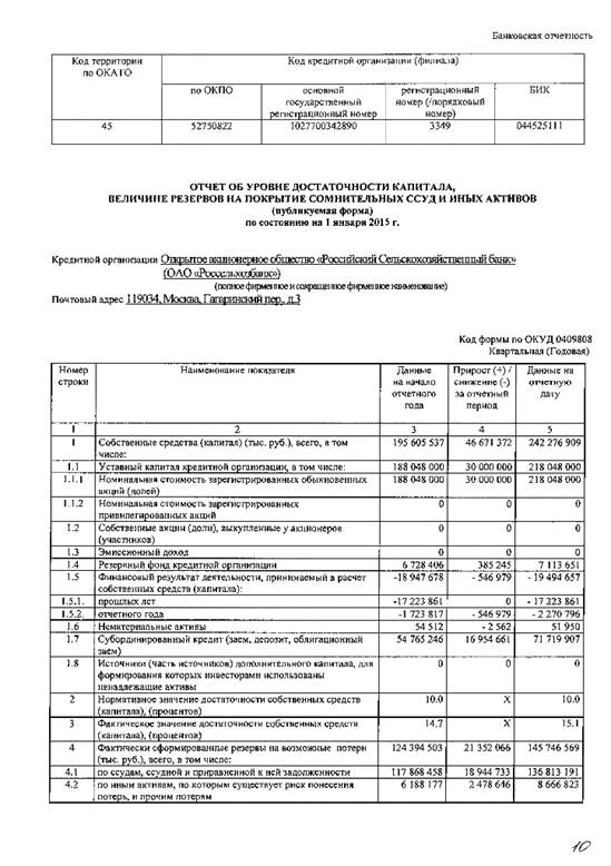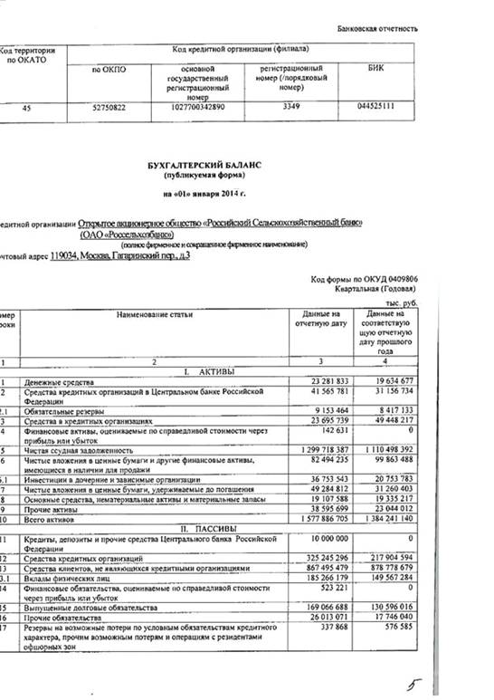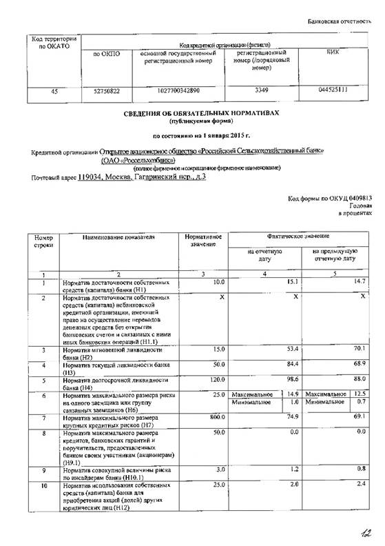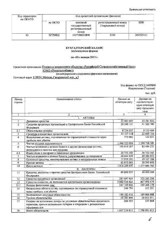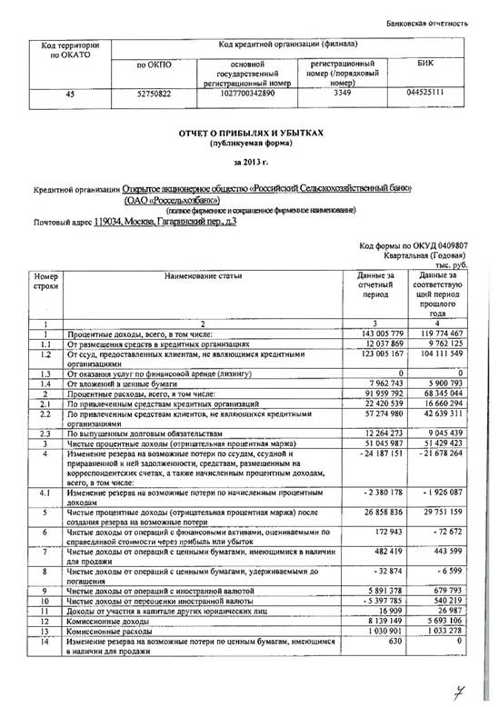 "Россельхозбанк" строится на анализе динамики следующих коэффициентов