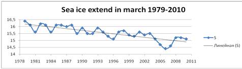 Зимой 2010 года площадь ледяного покрова Северного Ледовитого океана оставалась близкой к площади ледяного покрова прошлого года, в марте же достигла максимума своего развития 15,1 млн.км2.