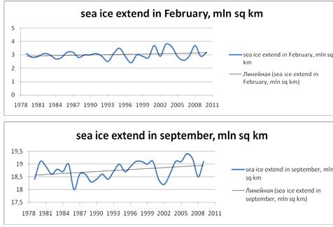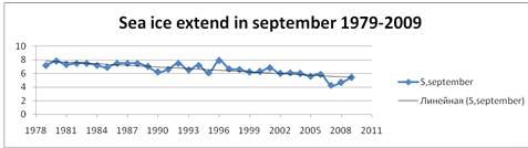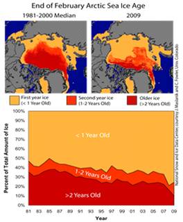 Ледовитость в конце апреля 2009 находилась в рамках ожидаемой естественной изменчивости. А в сентябре 2009 площадь ледяного покрова составляла 5,4 млн. км2, что значительно превышало значения предыдущих лет.