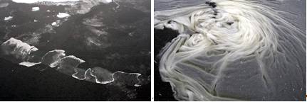 Другой важный элемент суточного дрейфа- это дрейфоразделы- узкие зоны большой протяженности(100-1000км), разделяющие потоки льдов противоположного направления.