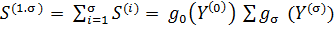 Далі, сума вхідних і вихідних значень S(i), тобто лінійна апроксимація, для і-го циклу шифрування визначається як сума значень функцій fi входу і-го циклу Y(i-1) та виходу і-го циклу Y(i):