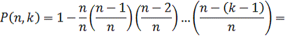Зробивши оцінку складності дискретного логарифмування на основі методу ρ-Полларда з урахуванням імовірності колізії, отримаємо формулу для оцінки ймовірності відбуття колізії при відомих порядку базової точки n та складності k:
