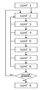 Так происходит до разработки стратегий подразделений самого нижнего уровня иерархии. Здесь, на шаге 8 получаем стратегию рядовых сотрудников предприятия по достижению поставленных им целей.