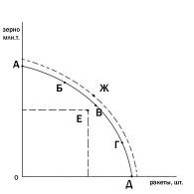 совершенствуются технологии и техника, кривая производственных возможностей,