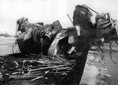 Сброшенная взрывом мачта «Марата», 1941 г.