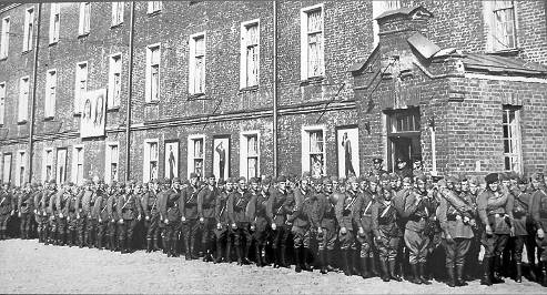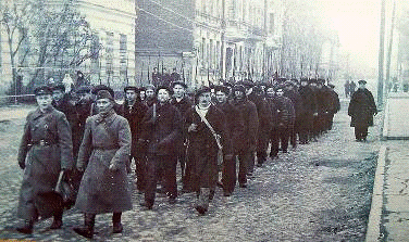 Рабочие Кронштадта направляются на занятия по военной подготовке,