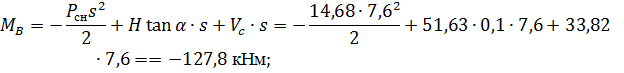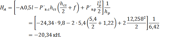Опорные реакции определяем из условия равенства нулю моментов всех сил относительно опор рамы. Для упрощения вычисления заменим распределенные нагрузки от ветра, действующие нормально к скатам, их составляющими.