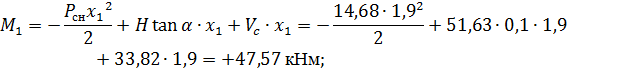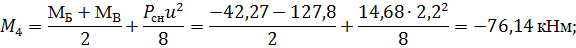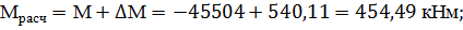 а) от собственного веса и снега М=-455,04 кНм; N=-149,08 кН.