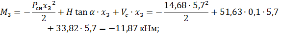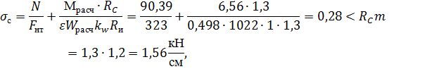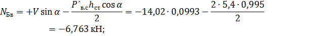 Стойка рассчитывается как сжато- изгибаемый элемент от воздействий собственного веса, снега и ветра: М=6,56кНм; N=90,39 кН. Длина стойки lст=5,4 м.