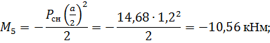 б) От снеговой односторонней нагрузки на левой половине ригеля(рис. 6.)
