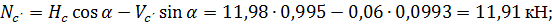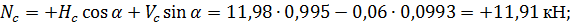 разгружающий момент от переноса продольной силы с оси a-aна нейтральную ось