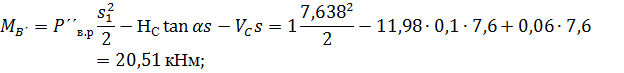Проверка принятого сечения ригеля на скалывание при изгибе по клеевому шву в узле В.
