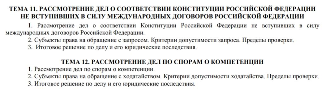 Среди полномочий Конституционного Суда РФ определенный практический и теоретический интерес представляют полномочия Суда по рассмотрению споров о компетенции. Согласно ст. 125 Конституции РФ Конституционный Суд РФ разрешает споры о компетенции: между федеральными органами государственной власти; между органами государственной власти РФ и органами государственной власти субъектов РФ; между высшими органами государственной власти субъектов РФ. При этом юридической основой соответствующих правоотношений в сфере конституционного судебного процесса является определение судом субъекта, действия которого соответствуют Конституции РФ, федеральному законодательству, а также законодательству субъектов РФ.