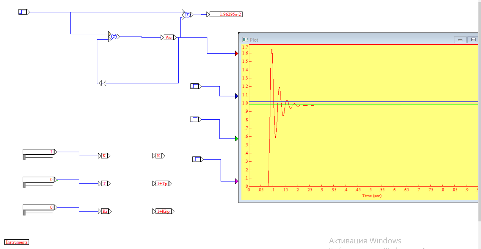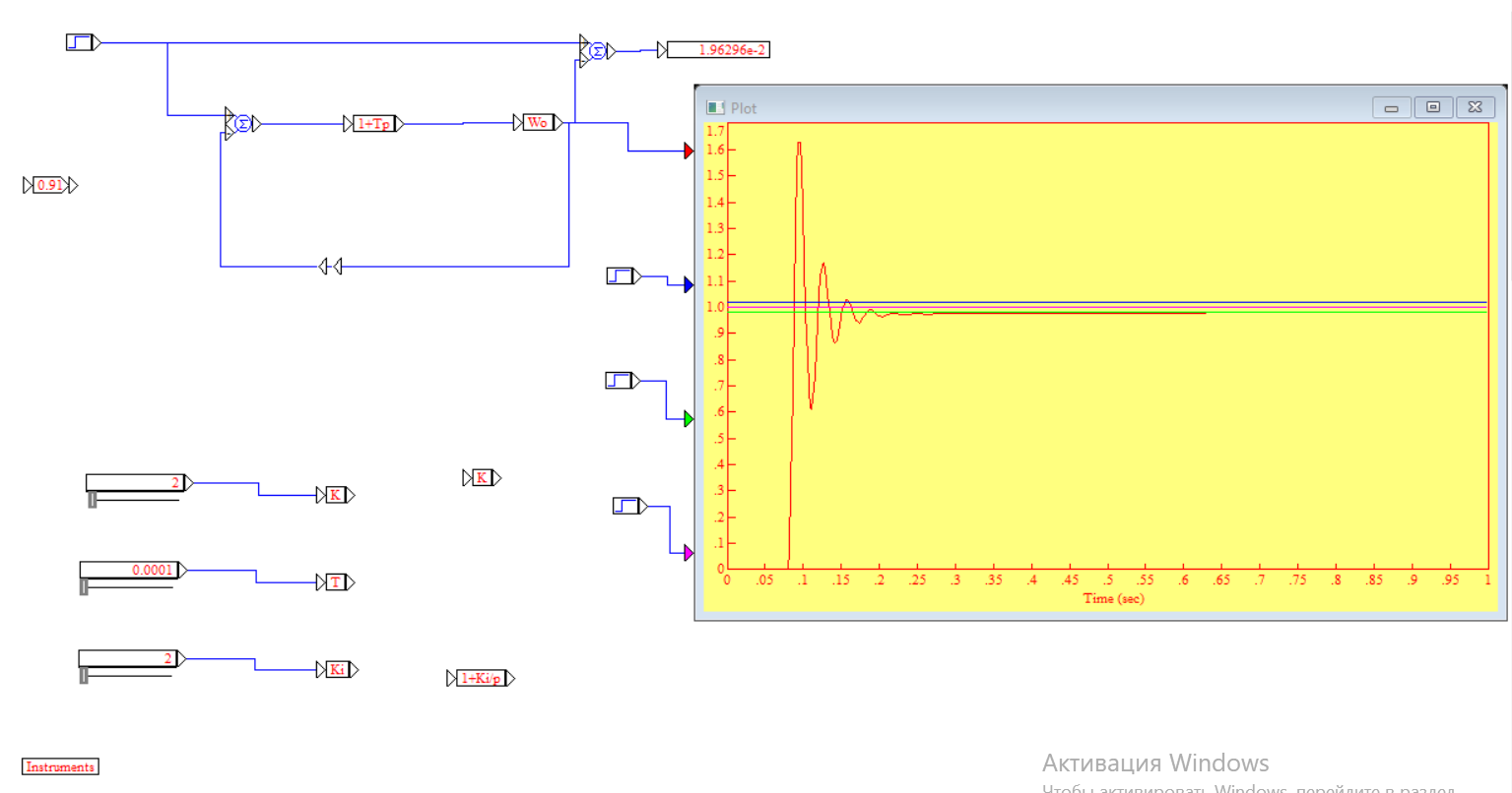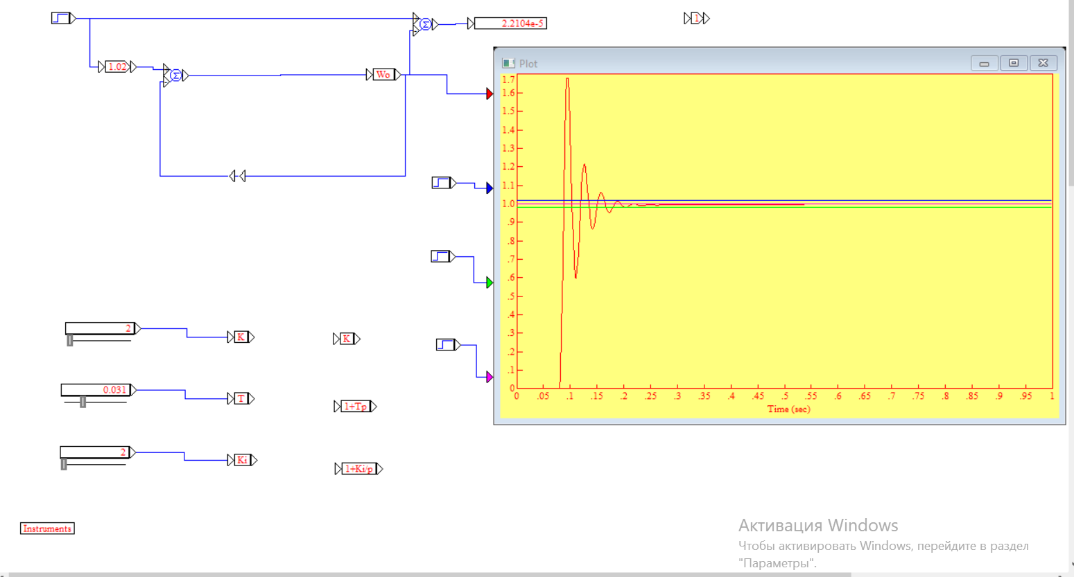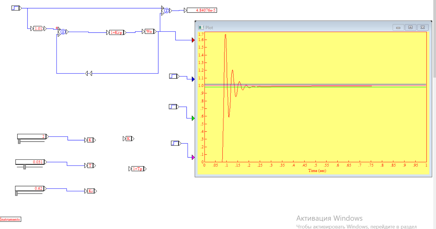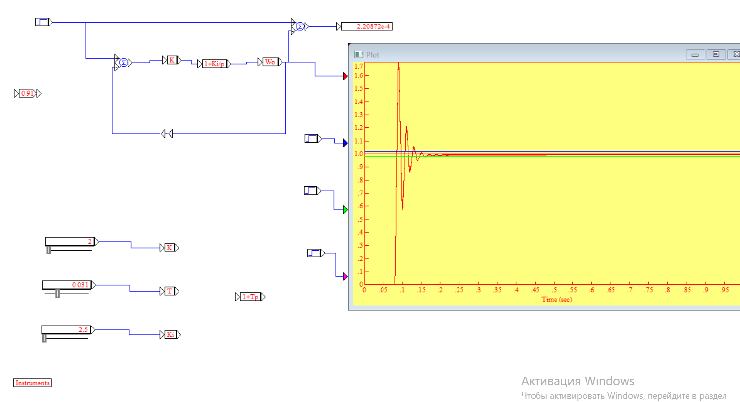 Рисунок 2.18 – Метод комбинированный: контурный коэффициент усиления + звено астатизма (К = 2, Ki = 2.5)