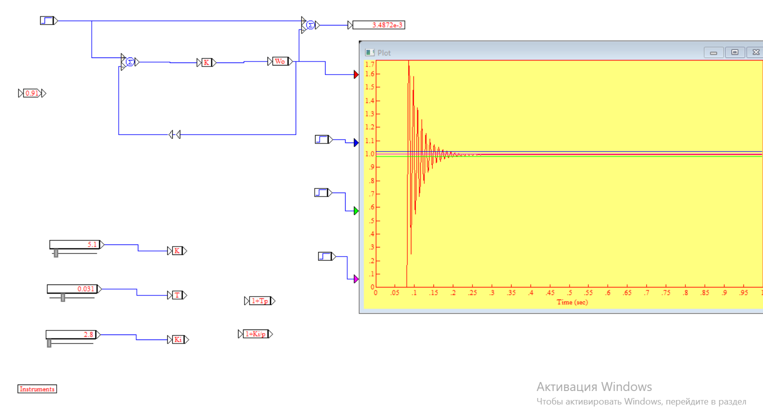 Рисунок 2.13 – Исходная модель (К=~15; К=2; Т1=0,003; Т2=0,001)
