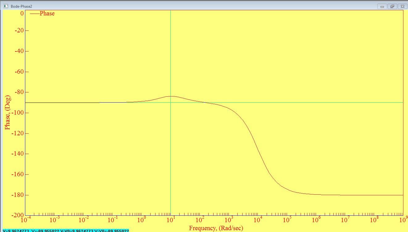 ЛАЧХ разомкнутой системы имеет вид 20-0-20-40 (участок с нулевым наклоном не продолжителен). Предъявлены требования: минимально возможное перерегулирование, и малые собственные шумы САР. В точке единичного усиления фаза, уменьшаясь, пересекает значение -90 градусов с небольшим приращением |