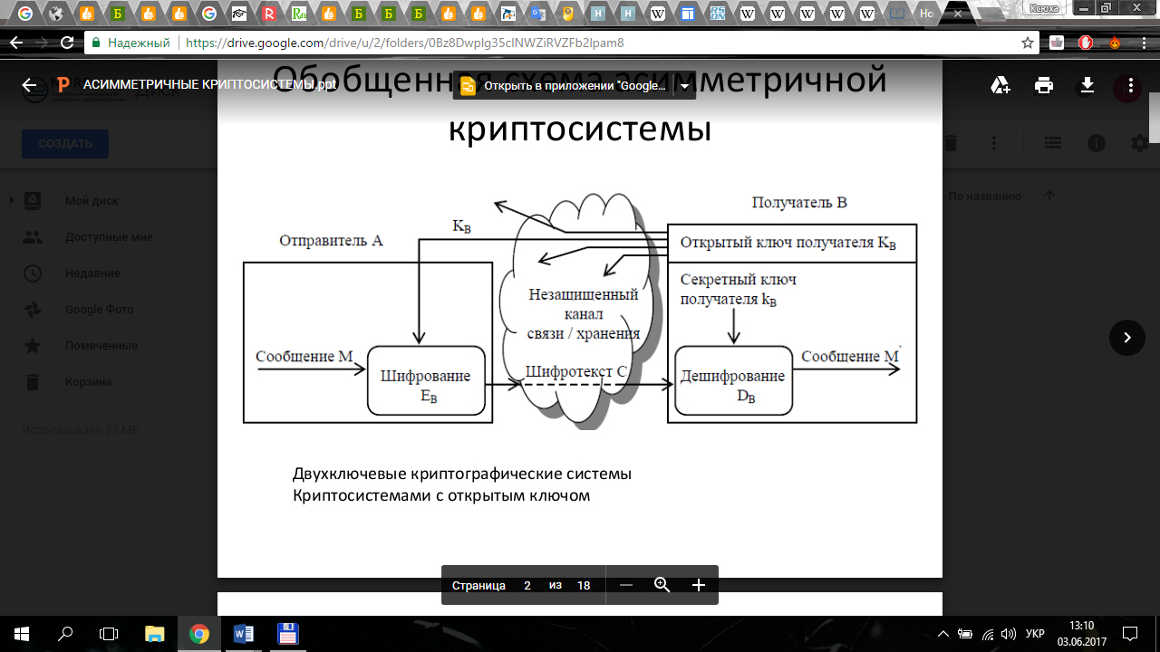 Відправник A, знаючи відкритий ключ КB і повідомлення M, може легко обчислити криптограму, за формулою (2.1.1).
