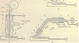 Рис. 5.11. Виды сварки в защитных газах: