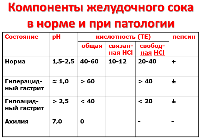 Пониженная кислотность бывает при некоторых видах гастритов. Полное отсутствие НСl и пепсина (ахилия) наблюдается при атрофических гастритах.