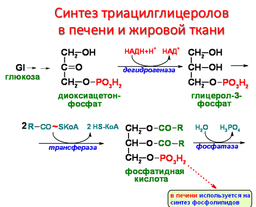 а затем триацилглицерола. Реакции