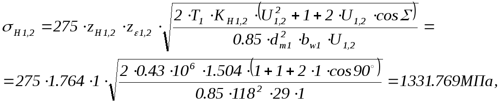 Контактные напряжения в зубьях