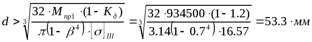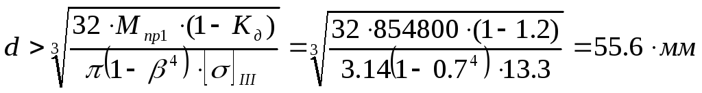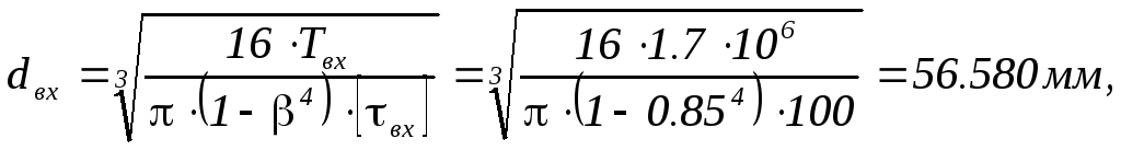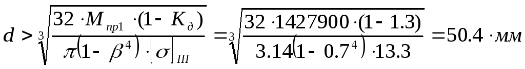 Задаемся коэфициентом = 0.8 ,который равен отношению внутреннего и внешнего диаметров.