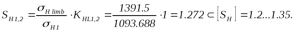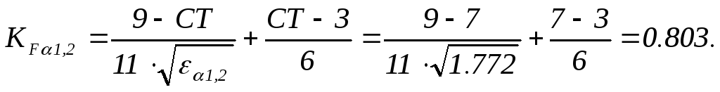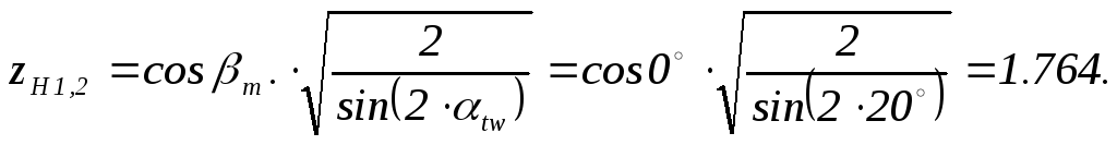 Коэффициент формы зуба передачи «1-2»