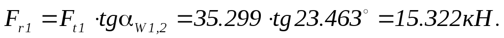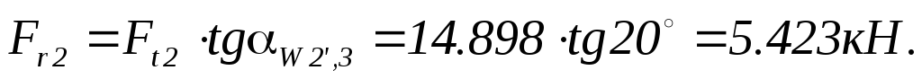 Цилиндрическая прямозубая передача, следовательно, существует окружное и радиальное усилие.
