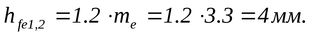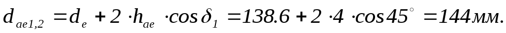 Высота головки зуба на внешнем торце