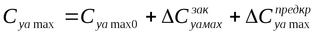 Приближенно можно принять что предкрылок, установленный по всему размаху крыла, увеличивает cyamax в 1,5 раза: