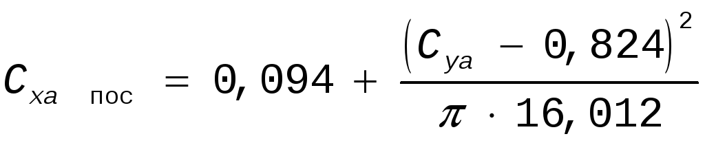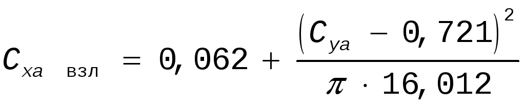 Используя рассчитанные значения, получаем из формулы (5,17) формулу для расчета поляры на взлетном режиме с механизированным крылом с учетом влияния земли