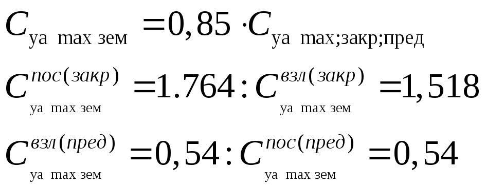В нашем случая при отклоненных во взлетное и посадочное положение закрылках максимальный коэффициент подъемной силы будет равен соотвественно