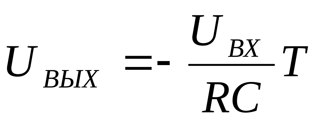 Интегратор - это устройство представляющее собой операционный усилитель, обратная положительная связь которого образована элементом с интегро-дифференциальной связью между током и напряжением. Таким элементом в данном случае является ёмкость. ОУ включен как генератор стабильного тока в цепь заряда конденсатора. В результате этого заря конденсатора происходит не по экспоненциальной, а по линейной функции зависимости напряжения от времени. Схема действует как накопитель в котором суммируется входной сигнал за заданный отрезок времени. Из условий задания определяем: