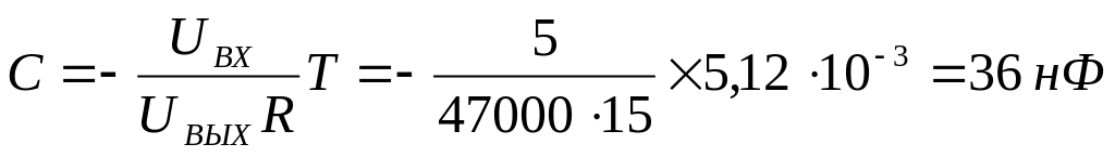 Откуда если взять сопротивление R=47 кОм и в начале в течении 1,707 mS интегрируется входное напряжение +5В,а также напряжение на выходе спадает до -Е=-15В, то
