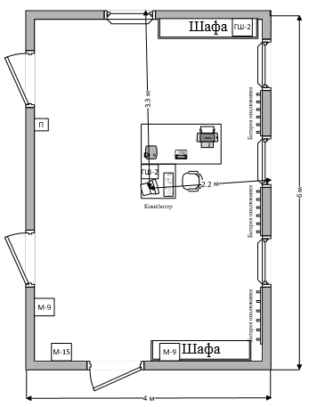 У даній роботі був проведений аналіз загроз і вразливостей, на підставі яких було прийнято рішення з ефективності побудованої системи захисту інформації для приміщення № 1, розташованої на другому поверсі дев'ятиповерхового житлового будинку. Приміщення володіє не найкращім місцем розташування, так як оточене приміщеннями сторонніх кімнат, а вікно виходить у двір неконтрольованої території, де, поблизу, розташовуються житлові будинки та організації, а так само місця паркування автомобілів, з яких не становить великих труднощів зняти конфіденційну інформацію, що циркулює в приміщенні № 1. У даній роботі був проведений аналіз загроз і вразливостей, на підставі яких було прийнято рішення з ефективності побудованої системи захисту інформації для приміщення № 1, розташованої на другому поверсі дев'ятиповерхового житлового будинку. Приміщення володіє не найкращім місцем розташування, так як оточене приміщеннями сторонніх кімнат, а вікно виходить у двір неконтрольованої території, де, поблизу, розташовуються житлові будинки та організації, а так само місця паркування автомобілів, з яких не становить великих труднощів зняти конфіденційну інформацію, що циркулює в приміщенні № 1.