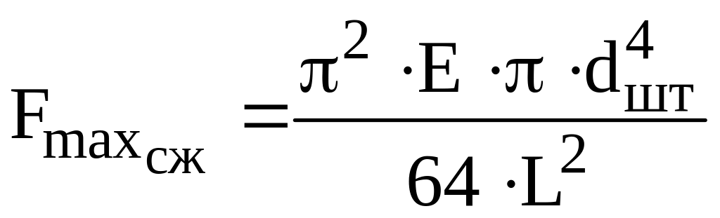 Принимаем длину штока из конструктивных соображений L=400 мм и определяем его диаметр, исходя из расчета стержня на устойчивость под действием сжимающей силы: