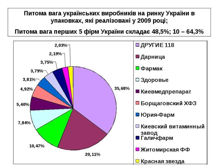 Рис. 1. Ринкова частка виробників фармацевтичної продукції України у 2009р.