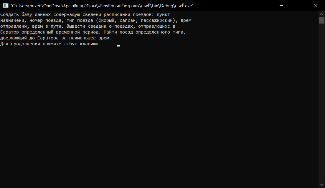 Рисунок 3 – Вывод текста задания, соответствует 1 пункту меню