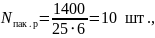 – число звеньев в одном пакете, шт.