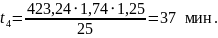 Интервал времени, по истечении которого заканчивает работу бригада по разболчиванию стыков, t4, мин, вычислится по формуле