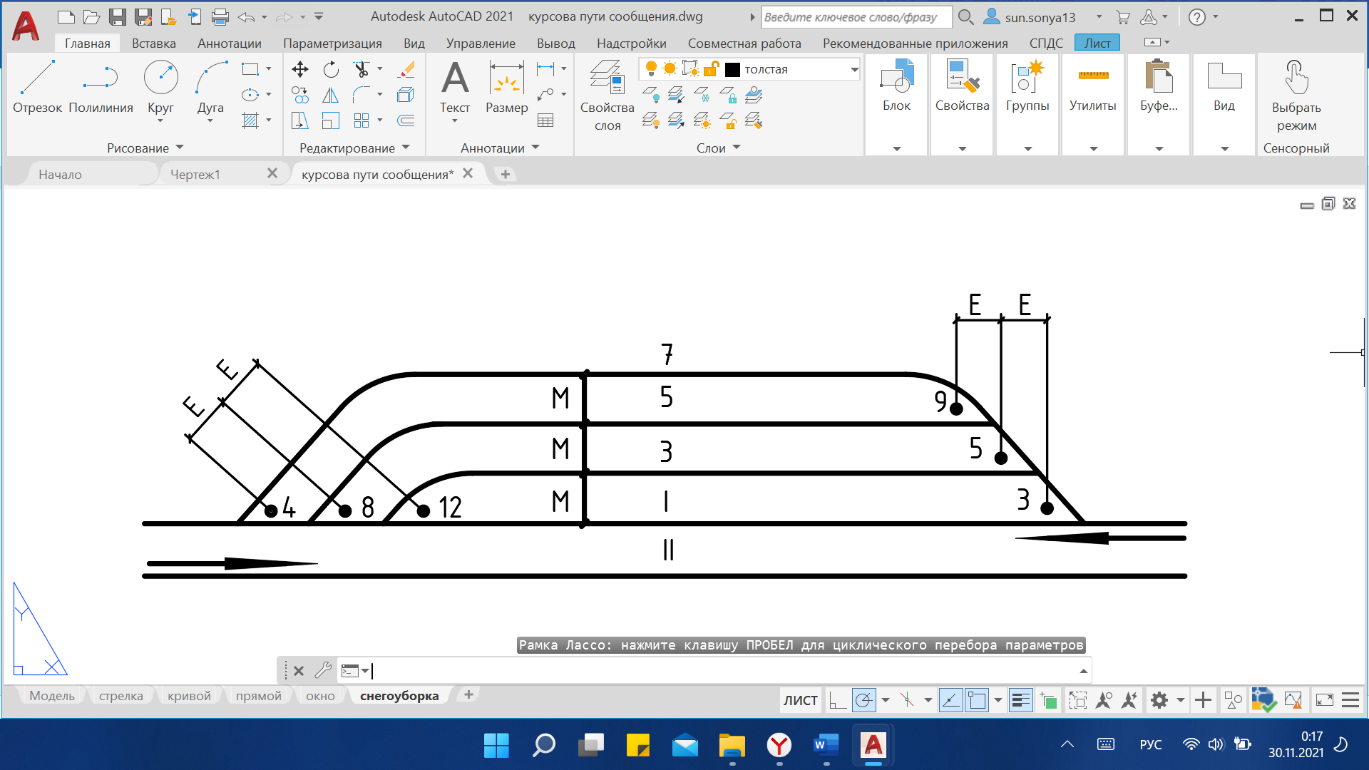 Рисунок 4.1 – Схема нечетного станционного парка типа «Трапеция с равной длиной путей»