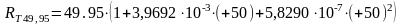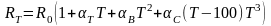 где αT = 3,9692 10-3 1/°К и αВ = 5,8290 10-7 1/°К2, αС = 4,3303 10-12 1/°К3