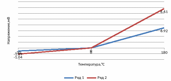 Uав = Uав(180°С) – Uав(180°С) =+6,612 – 6,92 =-0,308 мВ